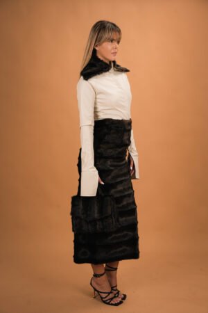 Embrace elegance and warmth with the Faux Fur High-Waisted Midi Skirt, a sophisticated addition to your winter wardrobe. Crafted with high-quality faux fur, this skirt offers a soft a texture that creates an elevated and luxurious look. The skirt features a zipper detail for easy movement blending comfort and glamour effortlessly.