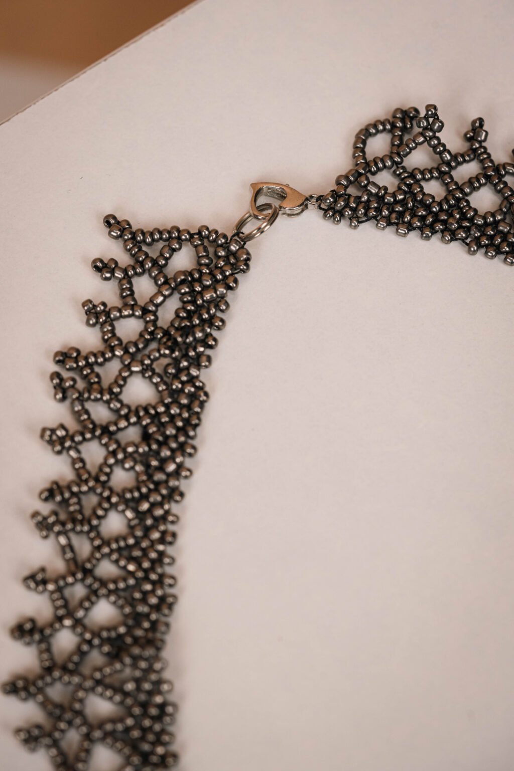 A perfect blend of elegance and intricate craftsmanship, this handmade beaded necklace resembles the beauty of lace with its delicate design. Its versatile design makes it an ideal accessory for both formal events and everyday elegance.